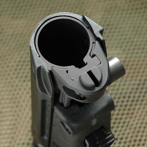 | UBRはUtility/Battle Rifleの頭文字。MSS M93で一定の評価を得たMagpulが、更にデザイン・機能を追及したM4/M16系バットストックの意欲作。専用のレシーバーエクステンションに固定されるメインチューブと、その下でスライドするストックボディーの2ピース構造。スライド部分は金属パーツで構成され、可変式ながらブレはほとんど感じられない。M93のように尖った部分のない流線型のデザインで、装備やスリング等が引っかかる心配も少ない。0.55"厚のバットパットはCTRと共通で標準装備。 | ||||||||
