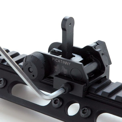 米陸軍に制式採用されている現行BUIS。製造はMaTech(http://www.matech.net/)。金属の精密加工を専門とする企業で、その製品は科学分野から一般家庭用品まで幅広い。軍需や銃器に特化している訳ではなく、BUISを除き銃関連で目立った製品は無い。サイトは左レバーに連動したカムでサイトポストを上下する可変レンジのアイアンサイト。M4またはM16のフラットトップレシーバーに装着する。NSN:1005-01-484-8000